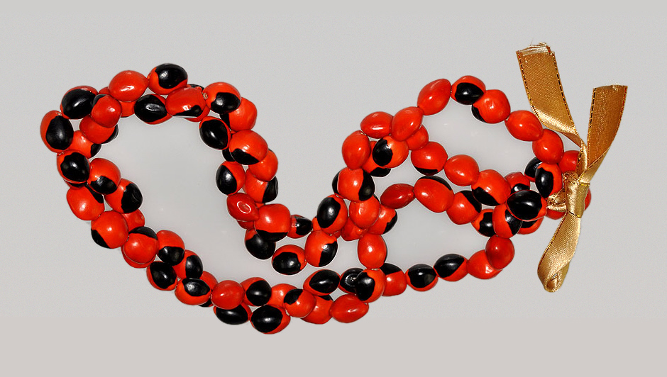 “Varias semillas de otros atractivos de la familia de las leguminosas (Fabaceae) se usan para collares en el Caribe, México y América Central. La más espectacular son de la impresionante media de color rojo, mitad negro semillas de fréjol suplicante (Abrus precatorius) y la vid muy similar, Rhynchosia precatoria. Aunque las semillas de ambas especies pueden ser tóxicas si se ingieren, los de fréjol suplicante son especialmente peligrosos debido a las proteÃnas llamadas lectinas insidiosas. Las lectinas pueden causar que los glóbulos rojos agruparan (aglutinarse) y puede estimular la división celular anormal en reposo B y los linfocitos T. Debido a su cubierta de la semilla dura, las semillas son especialmente potentes cuando se muele. Una semilla bien masticada podrÃa ser fatal para un ser humano adulto. A pesar de su reputación como una de las semillas más mortÃferas del mundo, fréjoles suplicantes son sin duda una de las semillas más bellas del mundo. A veces se llaman los fréjoles o judÃas de oración del rosario y se han utilizado para los rosarios. Debido a su peso notablemente uniforme de 1/10o de un gramo, las semillas de Abrus precatorius fueron utilizados por los orfebres de Asia Oriental como las pesas patrón para pesar oro y plata. De hecho, el famoso diamante Koh-i-noor de la India, actualmente una de las joyas de la corona británica, se pesaron los informes, la utilización de semillas de Abrus precatorius”.Tomado de: waynesword
