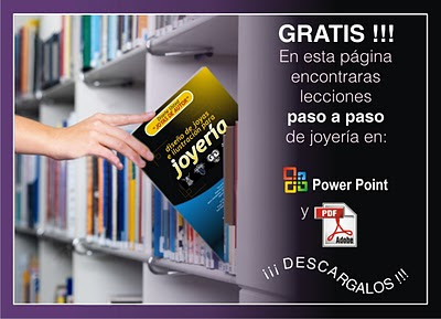Con la colaboración de los MAESTROS JOYEROS, estamos publicando desde que se inicio nuestra página: LECCIONES FACILES DE JOYERIA en PDF y Power Point gratuitos para realizarlos con equipos y materiales al alcance de su presupuesto.