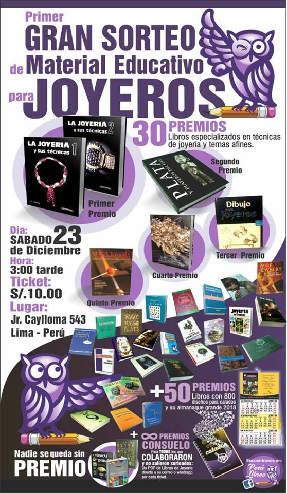 Los Invito a toda la Comunidad de Maestros Joyeros a participar en esta rifa de fin de año donde realmente todos ganan. Los premios son Libros originales y algunos usados.