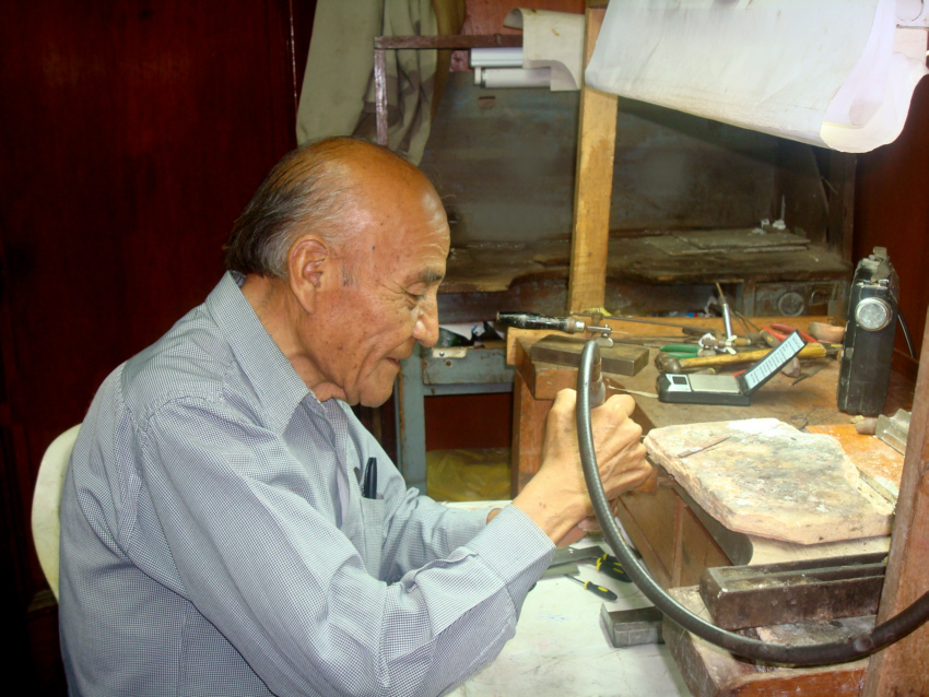 Bernardino Loroña Meza es un amigo de Aprenda JoyerÃa, es un joyero de gran experiencia y no se guarda los secretitos de este arte, siempre con el consejo oportuno, ha formado a muchos joyeros, cuando desempeñó la docencia enseñando joyerÃa para el Ministerio de Educación, y también muchos ayudantes en su taller lo consideran su maestro, quienes ahora hacen joyas de calidad.